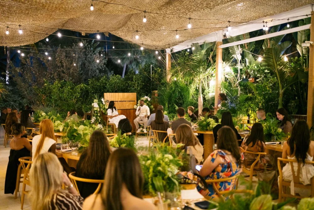 This culinary prelude was followed by a refreshing coconut milk ceviche, featuring crisp apple, tangy grapefruit, and tender hearts of palm—a dish that captured the tropical essence of Miami. Subsequent courses included decadent short ribs, meticulously prepared, and a perfectly seared sea bass, which was not only a feast for the palate but also presented with artistic precision, reflecting the overall aesthetic of the evening. The meal culminated in a selection of tropical desserts, providing a sweet and memorable close to the gastronomic experience. Each dish was designed to be a conversation starter, enhancing the overall celebratory mood.