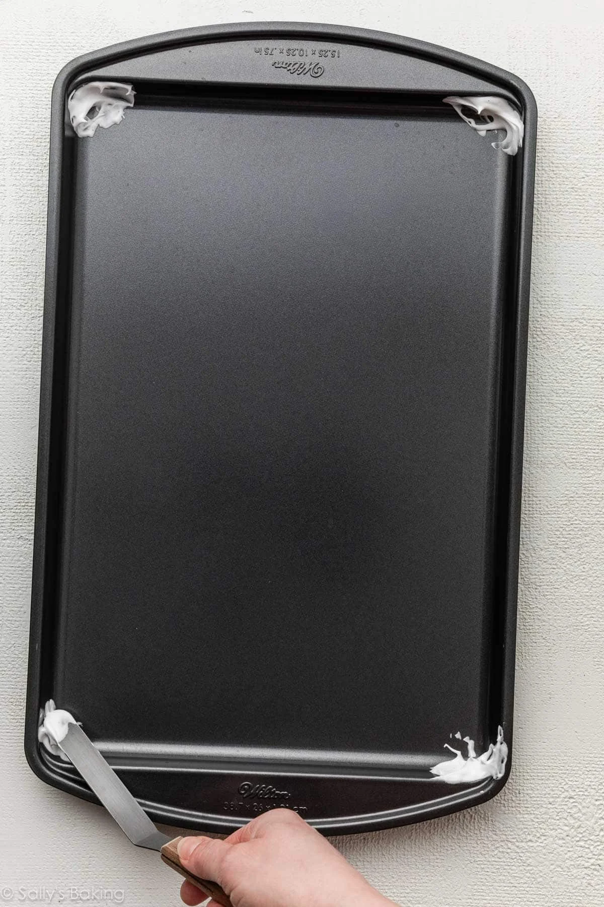 Once the meringue is perfectly whipped, it is carefully spread onto a parchment-lined baking sheet. A key trick, often employed by seasoned bakers, involves using small dabs of meringue to "glue" the parchment paper to the corners of the pan, preventing it from shifting during spreading. A light dusting of granulated sugar on the parchment before spreading also acts as a release agent, minimizing stickiness. The baking process itself is a delicate balance: the meringue needs to be baked just until it is set, lightly crisp on the surface, and springy beneath, with a pale, barely golden hue. Over-baking will lead to a dry, brittle meringue that is guaranteed to crack upon rolling, while under-baking will result in a tacky, unstable structure.