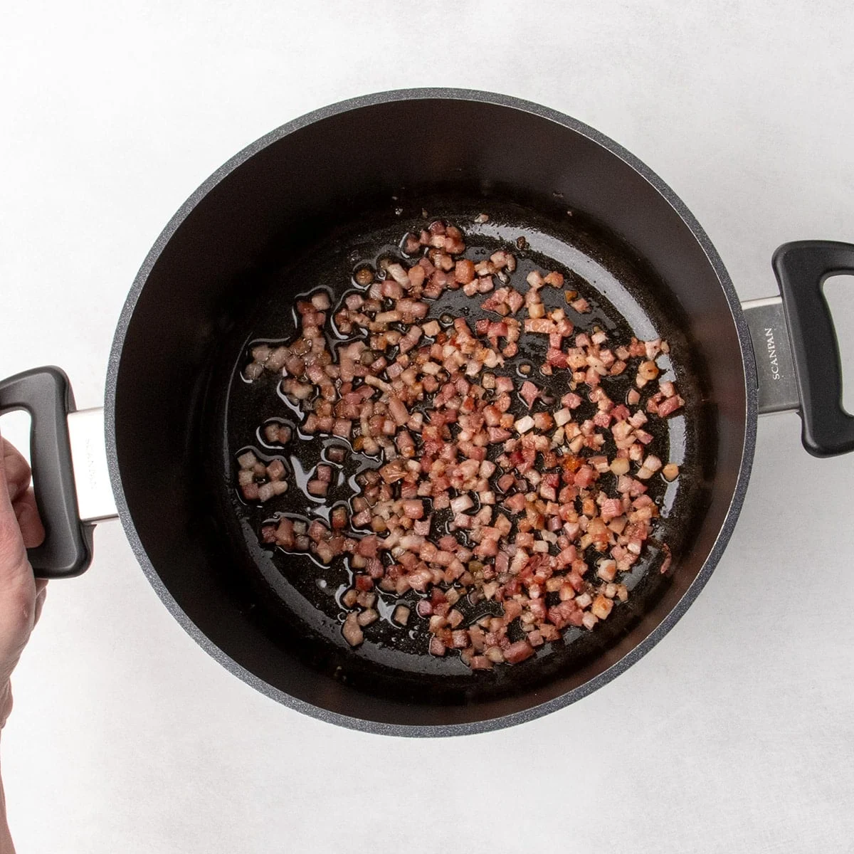 1. Sauté the Pork: If using pancetta or bacon, begin by sautéing the diced pork in a large pot over medium heat. Cook until it is golden brown and crispy, and the fat has rendered. Remove the cooked pork with a slotted spoon and set aside, leaving a small amount of the rendered fat in the pot (approximately 1-2 tablespoons) to be used later. This step is crucial for developing the savory base flavor.