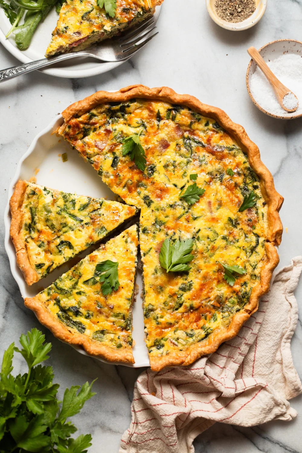 • Leafy Greens: Elevate your quiche with sautéed spinach, Swiss chard, kale, peppery arugula, or delicate watercress.
